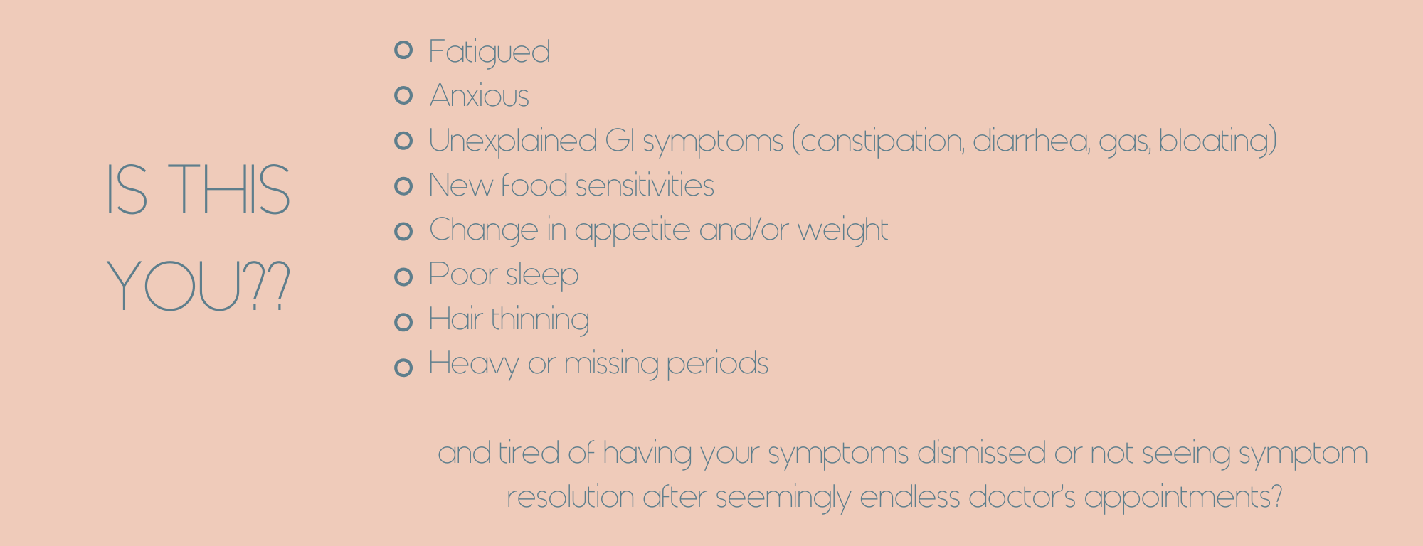 For women who struggle with unexplained health symptoms & are in pursuit of overall health and wellbeing with symptom resolution