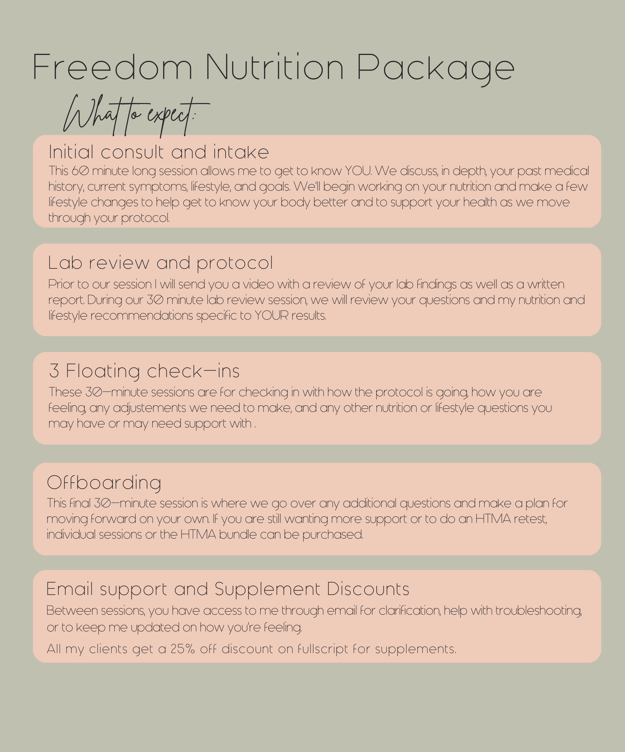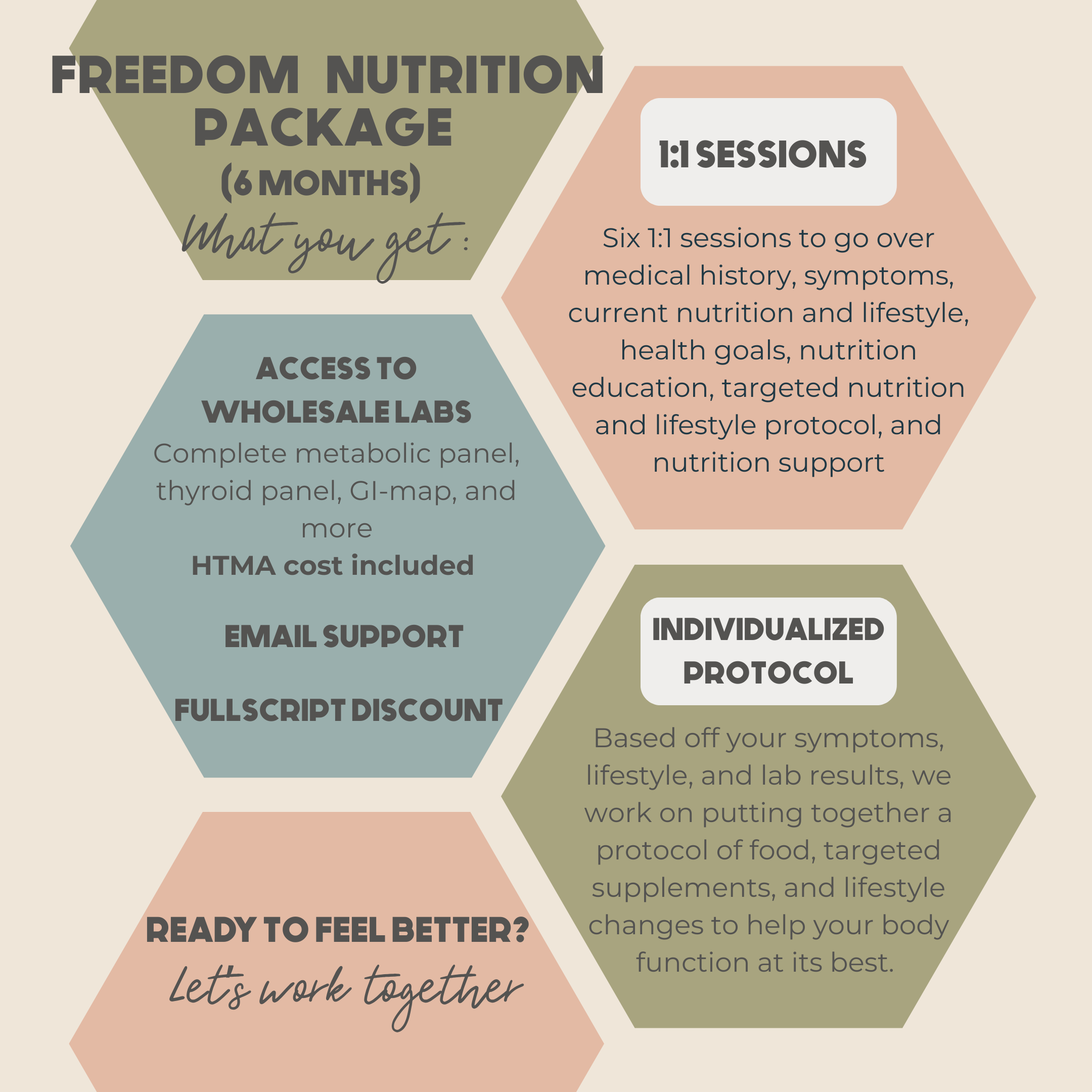 I offer 1:1 coaching with specific lab testing based on symptoms to provide you with targeted interventions and evidence-based recommendations.